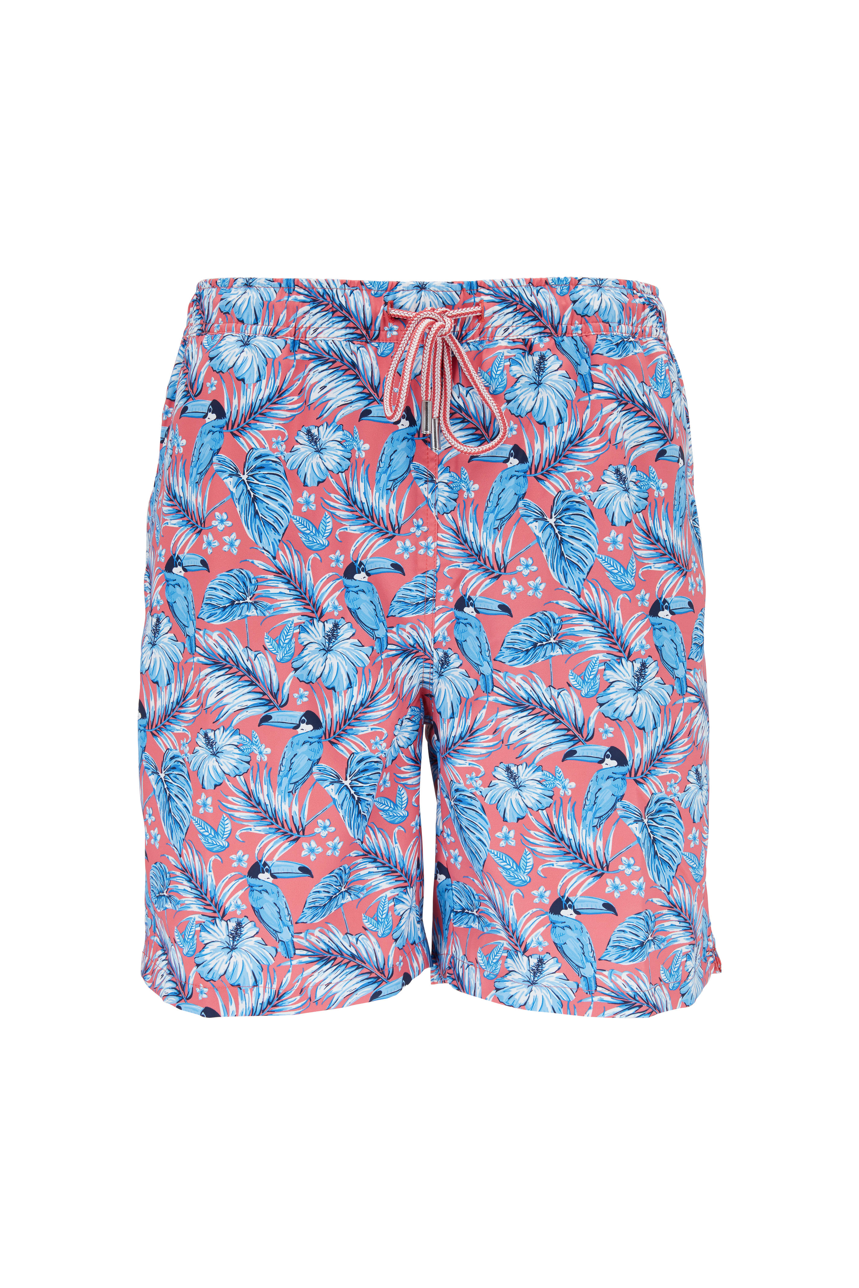 Peter Millar Seaside Collection Red Toucan Print Swim Trunks